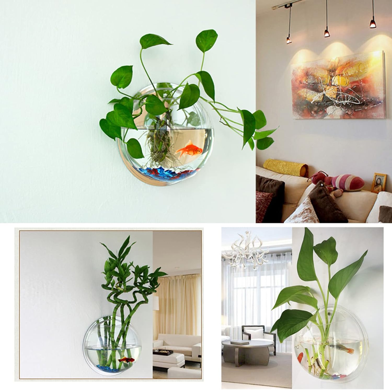Wall Fish Bowl, Small Hanging Goldfish Fish Tanks, Clear Acrylic Betta Fish Tank, for Aquarium Wall Plant Pot Decoration Planter Flower