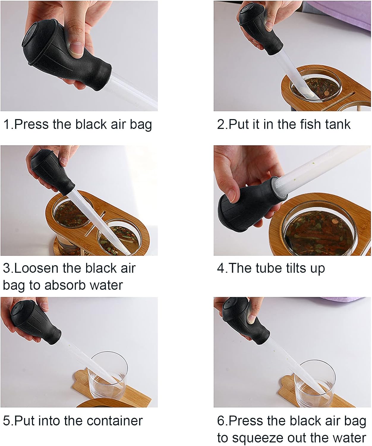 Qualified material: Manual fish tank water changer aquarium dropper is made of premium non-toxic plastic material for durable and practical use. It will not harm your fish. You can use it rest assure.