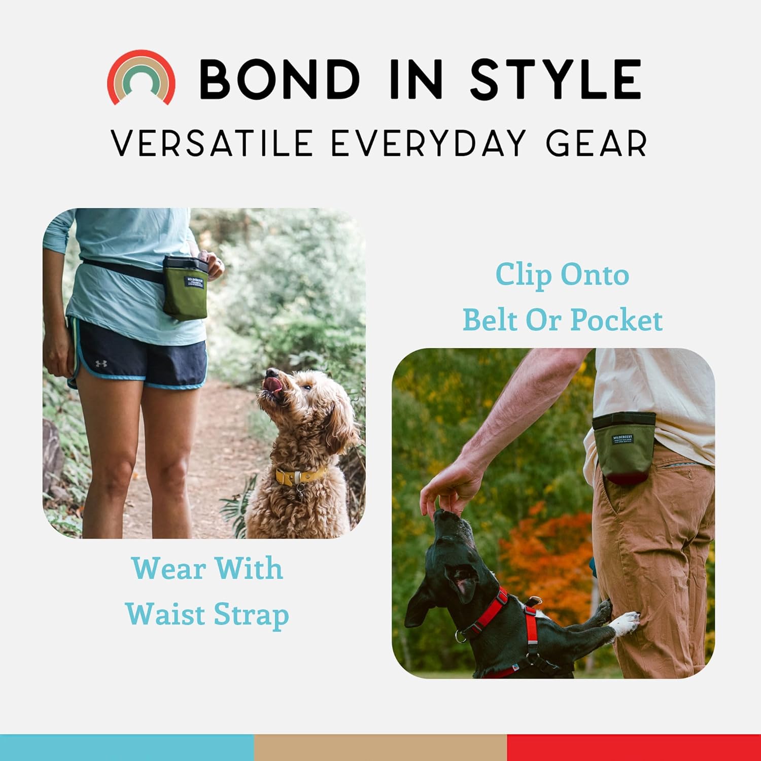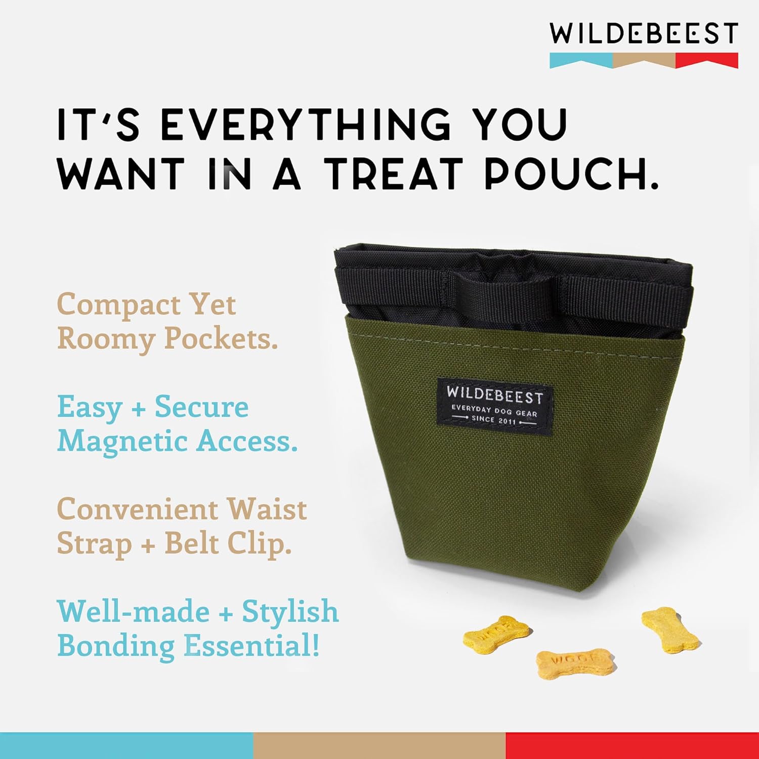 Wildebeest Dog Treat Pouch, Dog Treat Bag, Dog Training Treat Pouch, Dog Travel Bag, Pet Treat Pouch, Magnetic Closure, 2 Water-Resistant Compartments, Detachable Waist Strap & Belt Clip