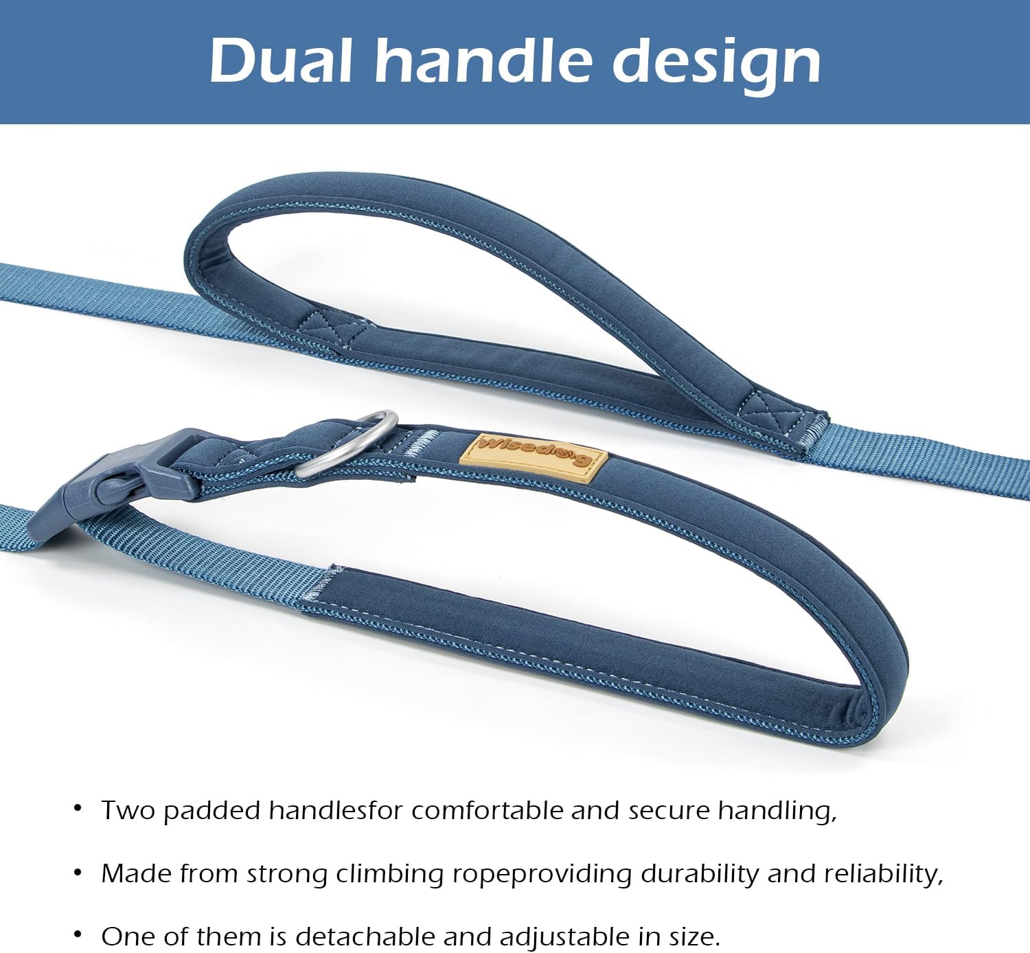 Wisedog 9.5 FT Hands Free Dog Leash, Comfort and Safety Padded Handle & Heavy Duty Metal Clasp – Two Handle Dog Leash Adjustable Lengths for Handless Walking Training Running with Crossbody, Navy
