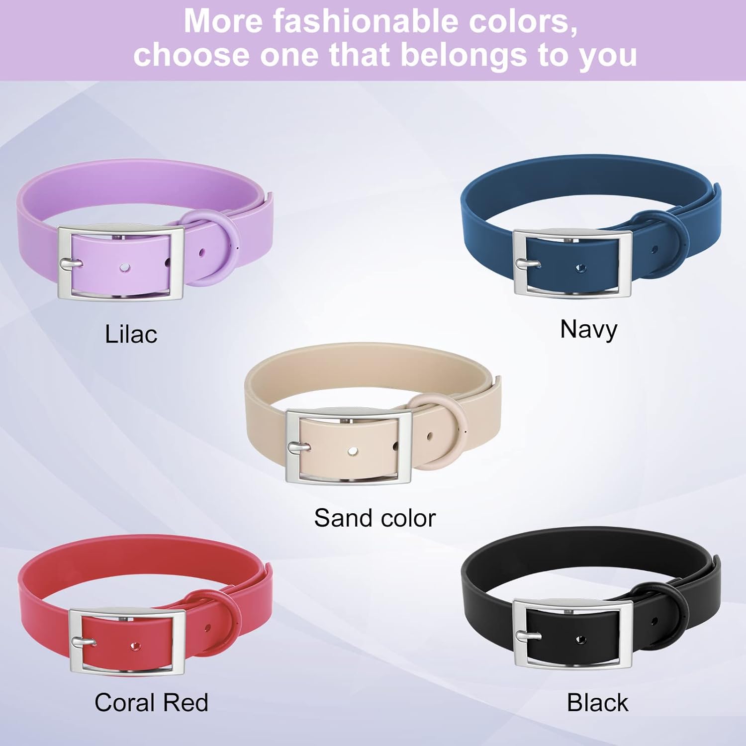 Wisedog Waterproof Dog Collar, Adjustable Soft Rubber Coated Webbing, Odor-Proof and Easy to Clean for Small Medium Large Dogs, with Airtags Case(L|15″-19″ × 1 in, Lilac)