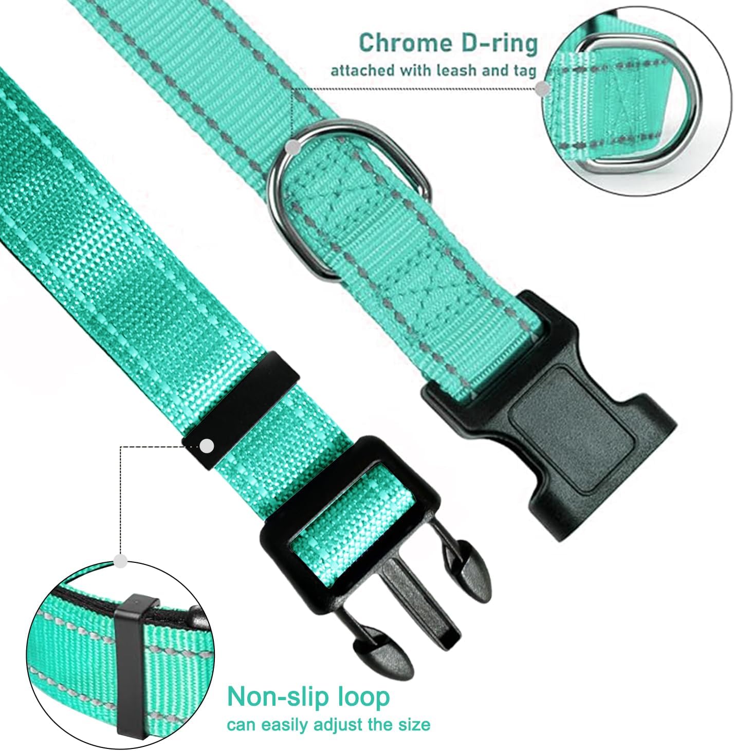 XXS Dog Collar, Reflective Pet Collar with Buckle Adjustable Safety Nylon Collars for Small Medium Large Dogs, Teal