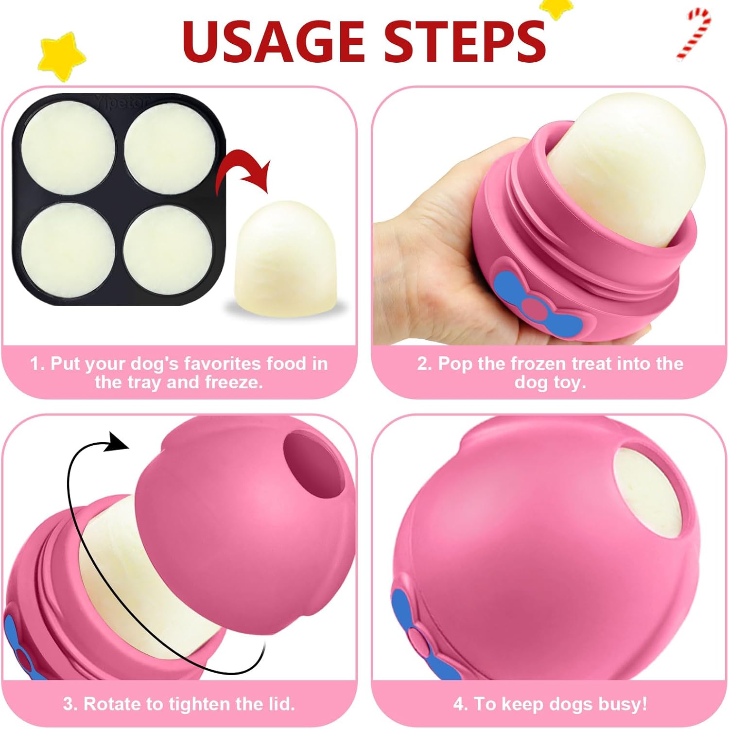Long Lasting & Easy To Clean: To use this dog toy, simply unscrew for effortless treat and kibble filling. Use re-freezable dog treat mold tray for DIY treats,add frozen treat to the toy, and hand it to your pup! The perfect interactive dog toys for boredom.