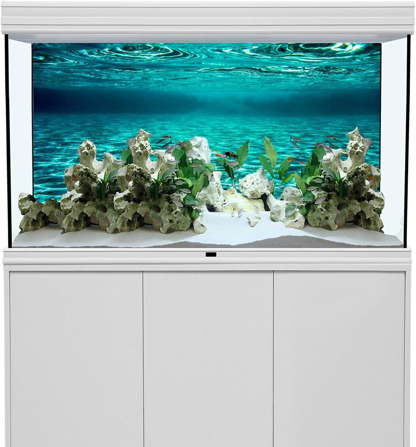 YongFoto Fish Tank Background 48×18 inch Turquoise Clear Water Ripple Lakebed Undersea Ocean Floor Underwater Seabed Polyester Backdrop Reptile Habitat Terrarium Aquarium Background